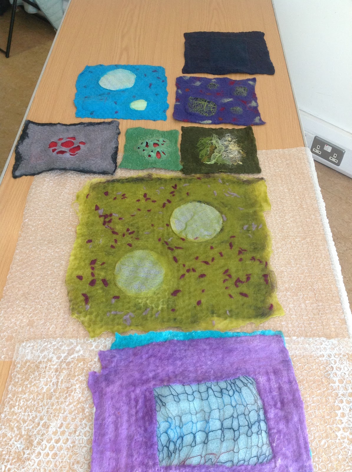 Our next usual Felt-in will be 15th September but if you are worried about withdrawal don’t forget to come along to the Felt Alive Exhibition, 7-29th July, The Loft Gallery, Portaferry. Or perhaps you have availed of the summer workshops – 23rd June Sea Creatures with Mandy Nash and/or 25/26th August The Art of Embossing with Wendy Bailye.