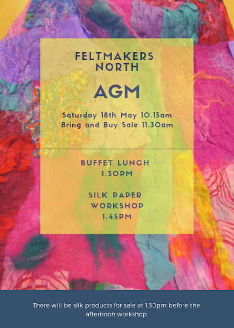 • Silk paper workshop. Please bring any silk fibres, Angelina, and decorative fibres with you to incorporate.