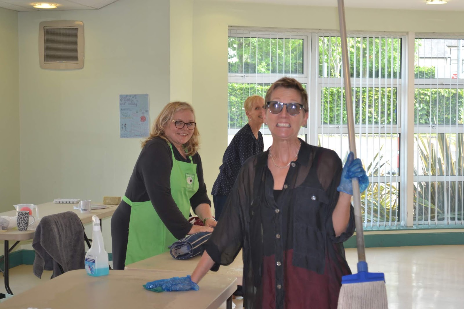 Helen, our wonderful helper for the day! With mop and bucket at the ready and plenty of tea and coffee to go round!