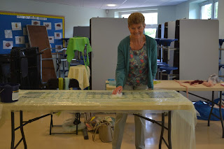 After laying out the fibres to Gail’s instructions and adding a little embellishment, we spent lots and lots and lots of time rubbing.