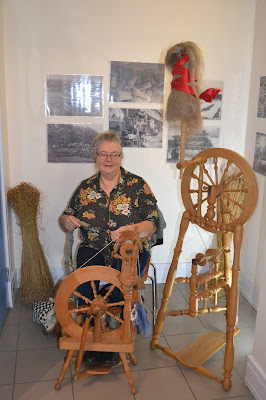 Sarah, a woman of many talents, drew lots of attention as she spun some of her own homegrown flax!