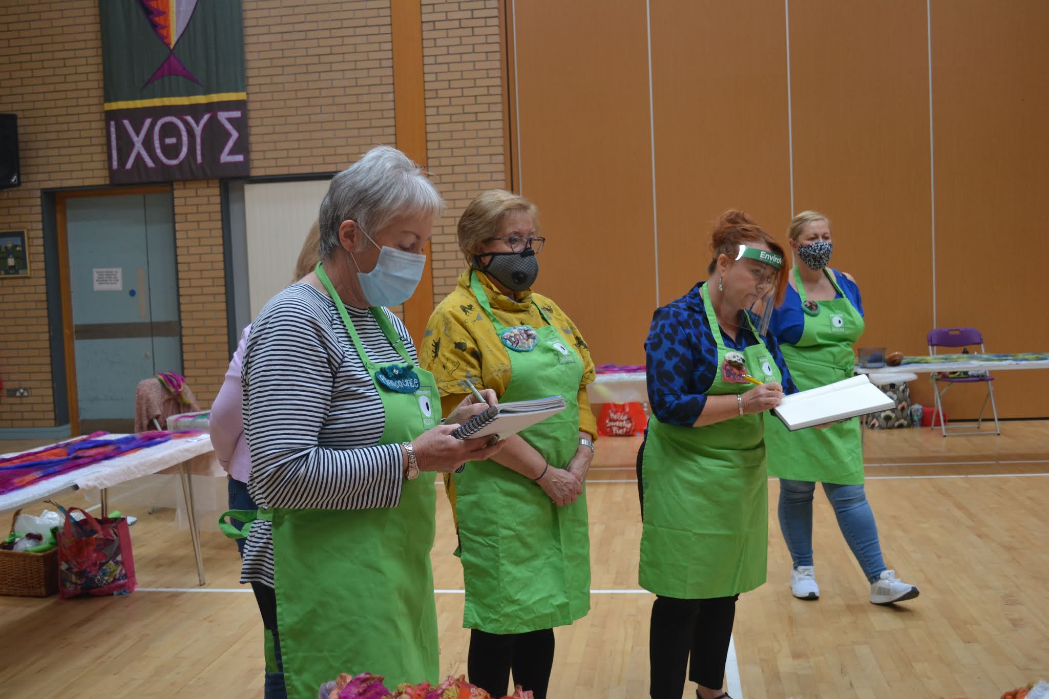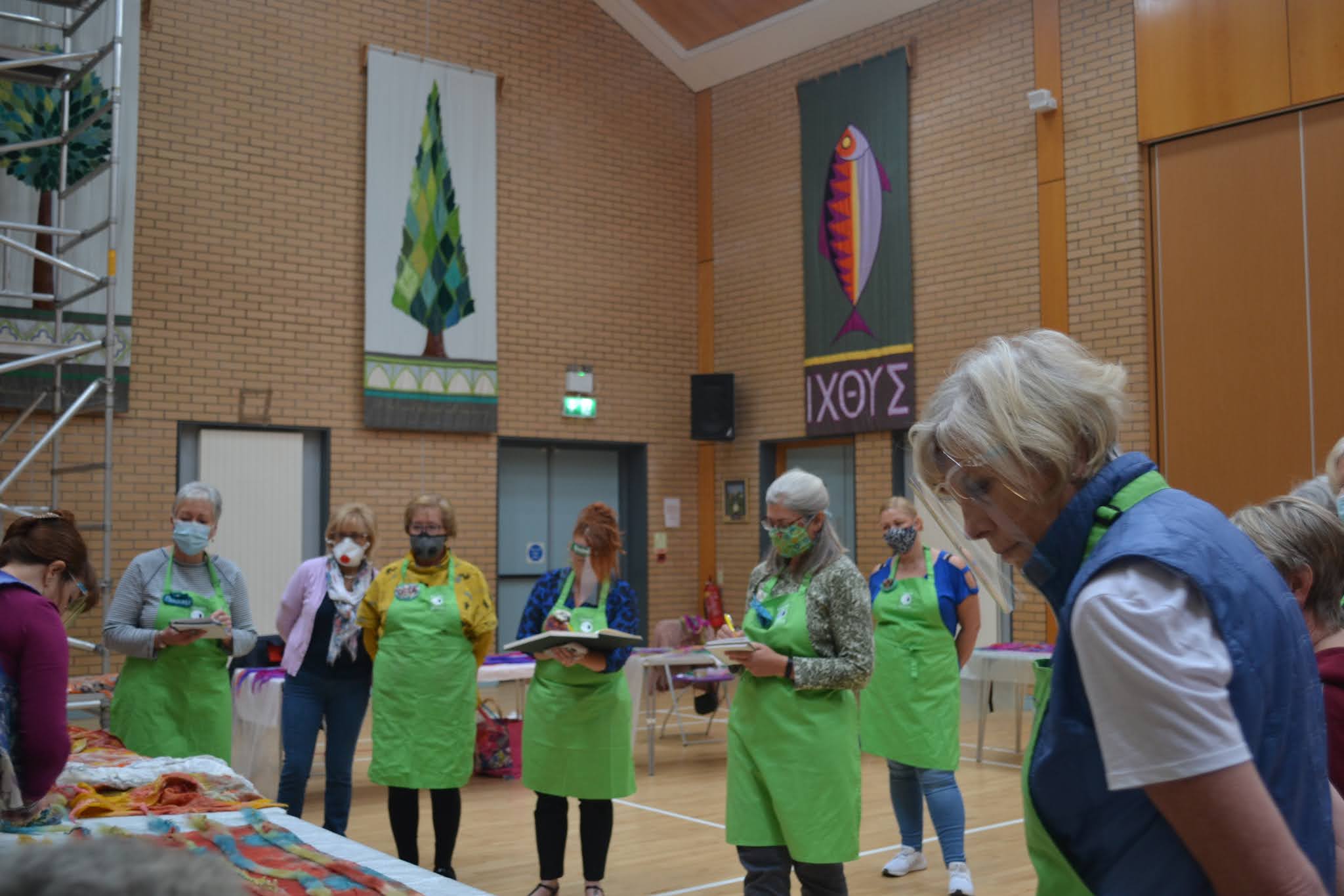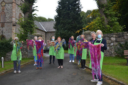We were so fortunate to be able to secure the use of the Downshire Hall belonging to Hillsborough Parish Church and everyone is proudly showing their scarves against the beautiful backdrop of the church grounds.  Many thanks go to Norma and the select vestry.