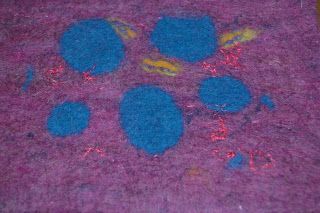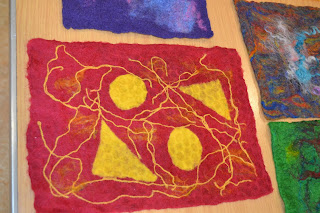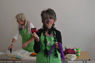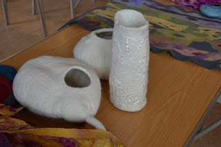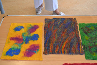 Anna showing a little van she created to be used for the children’s project. The pieces didn’t get finished by the time we had to pack up so Jane’s fulling techniques will have to be completed at home – all except speedy Sarah who always seems to get her things finished!