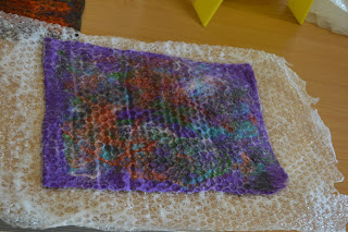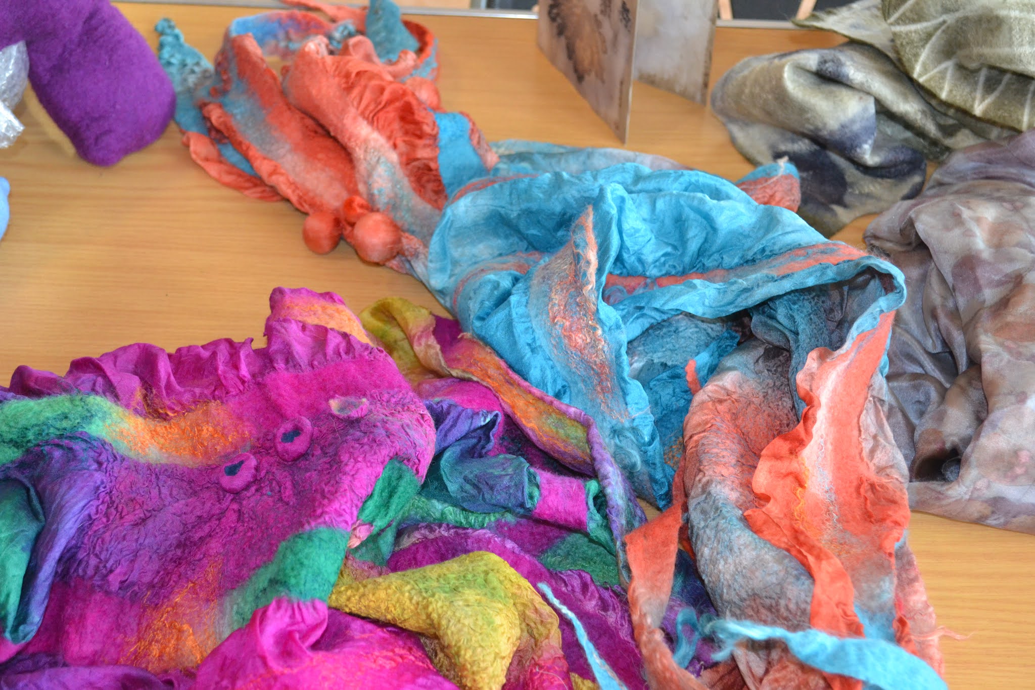 Some girls brought their finished scarves from our recent Shelley Steele workshop and everyone admired the amazing colours.