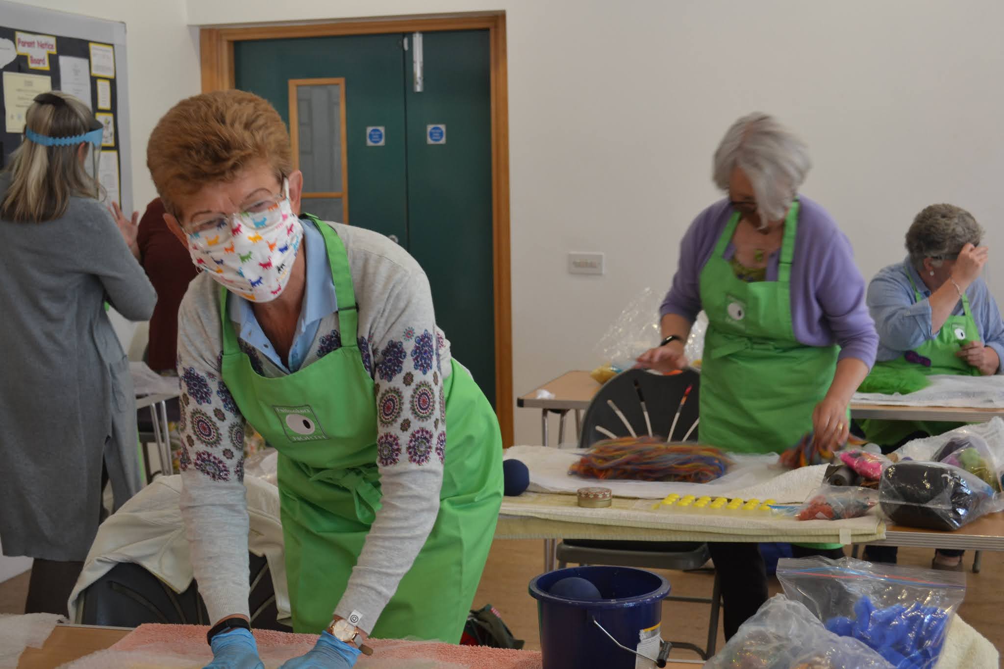 Hillsborough Village Centre was eerily quiet this morning but not for long as Feltmakers North got back to business after our six month absence. How good it felt to see everyone again – although unfortunately with most of us it was eyes only! With carefully restricted numbers things didn’t feel quite the same but everyone was eager to work together again as we concentrated on making some small samples to be used in the weighted blankets Feltmakers North is preparing as part of the Community Outreach Project.