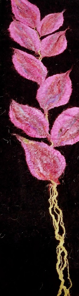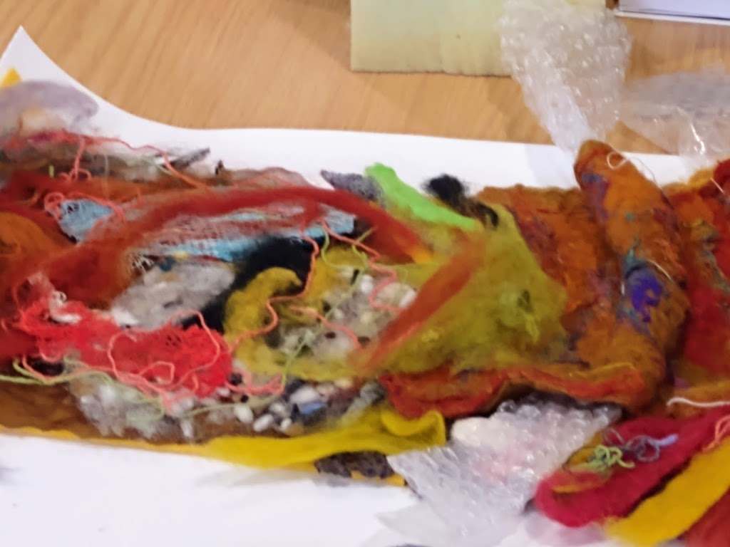We all were treated to a great introduction to the use of the world around us for ideas and inspiration to our work and also to the use of ‘pinterest‘ and how to safe ideas, research techniques while we can also follow other interesting feltmakers and think outside the box. Some beautiful samples on show!